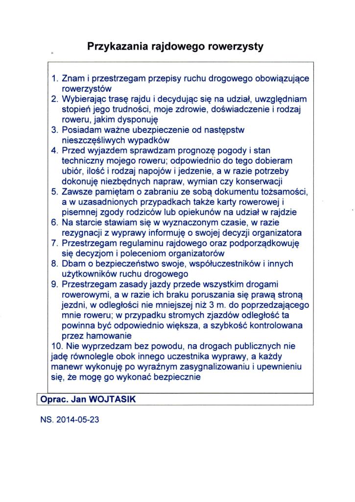 Zakończenie rajdu przewidywane jest ok. godz. 13.30 – 14.00 w Jodłowie.
